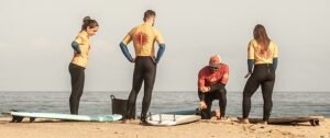 Multilingual surf instructors (Spanish, English, German, Italian)